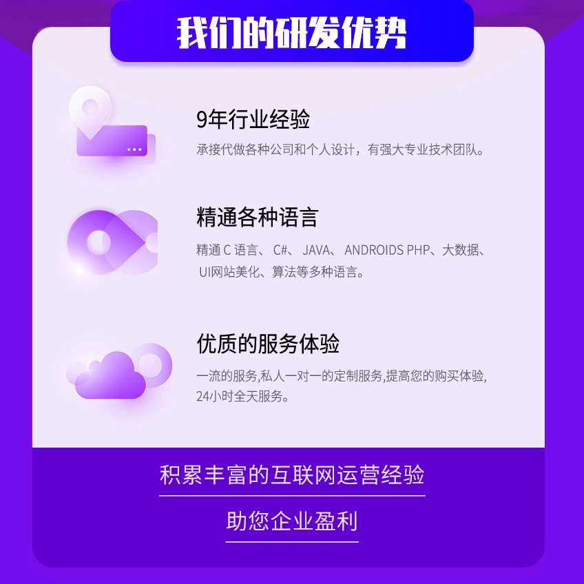 公司专注软件开发,成立了研发与技术支持中心。有多年建站经验,专注于企业网站搭建,小程序开发,公众号开发,系统软件定制,网站托管。图文详情
